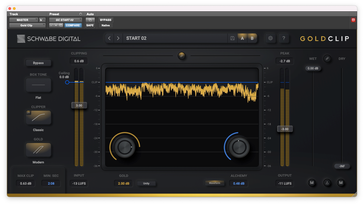 Schwabe Digital Gold Clip: the newest, shiniest addition to my mix bus. I typically spend a lot of time with a tool before incorporating it into my template, but this one secured its place pretty swiftly.