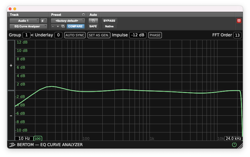 With the UAD Studer, I've made a preset to give me as flat a curve as possible to mix into. Make your way ‘under the hood’ to adjust the EQ settings while monitoring the output through a frequency analyzer. I particularly recommend this process when using plugins that alter the frequency response as much as this - it will save you some tail-chasing in the long run.