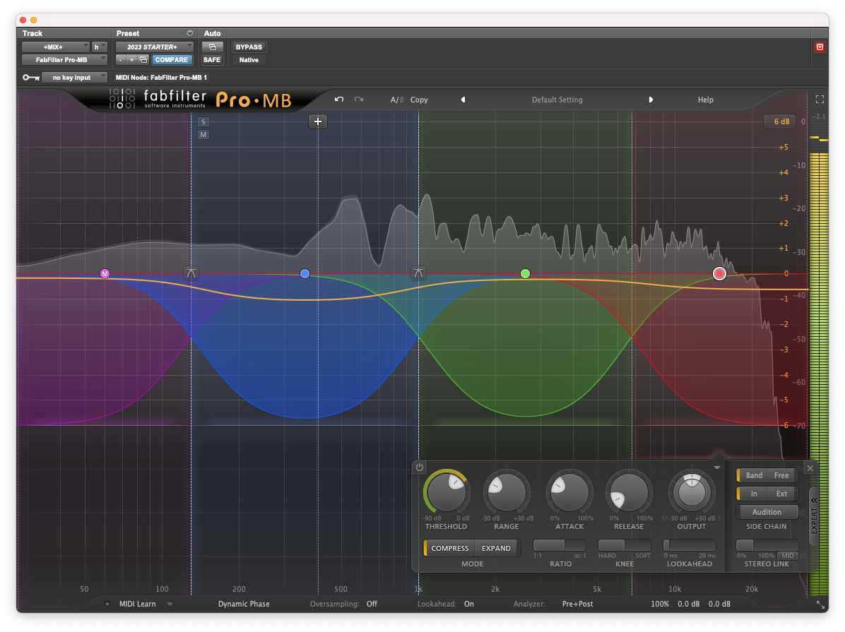 If I want the distinctive feel of mix compression (some pumping/tightness), I much prefer to lean into a multiband comp vs a single band counterpart (The Glue). This choice allows for dynamic control without compromising the soundstage so obviously.