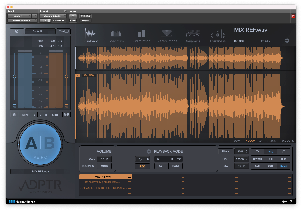 Comparing against references using Metric AB is an integral part of my workflow, whether it's the pre-mix, mixes of other tracks from the same project, or comparing against expertly finished tracks when aiming to match specific qualities.